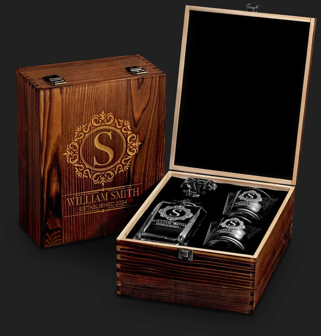 He absolutely loved it!!! The quality is so amazing! As he was opening the box he said “ I smell real wood.” He loved the engraving! He loved the glasses! Especially the words he could see. Loved that the top didn’t have rubber on it and how heavy the lid was! It was all around amazing!