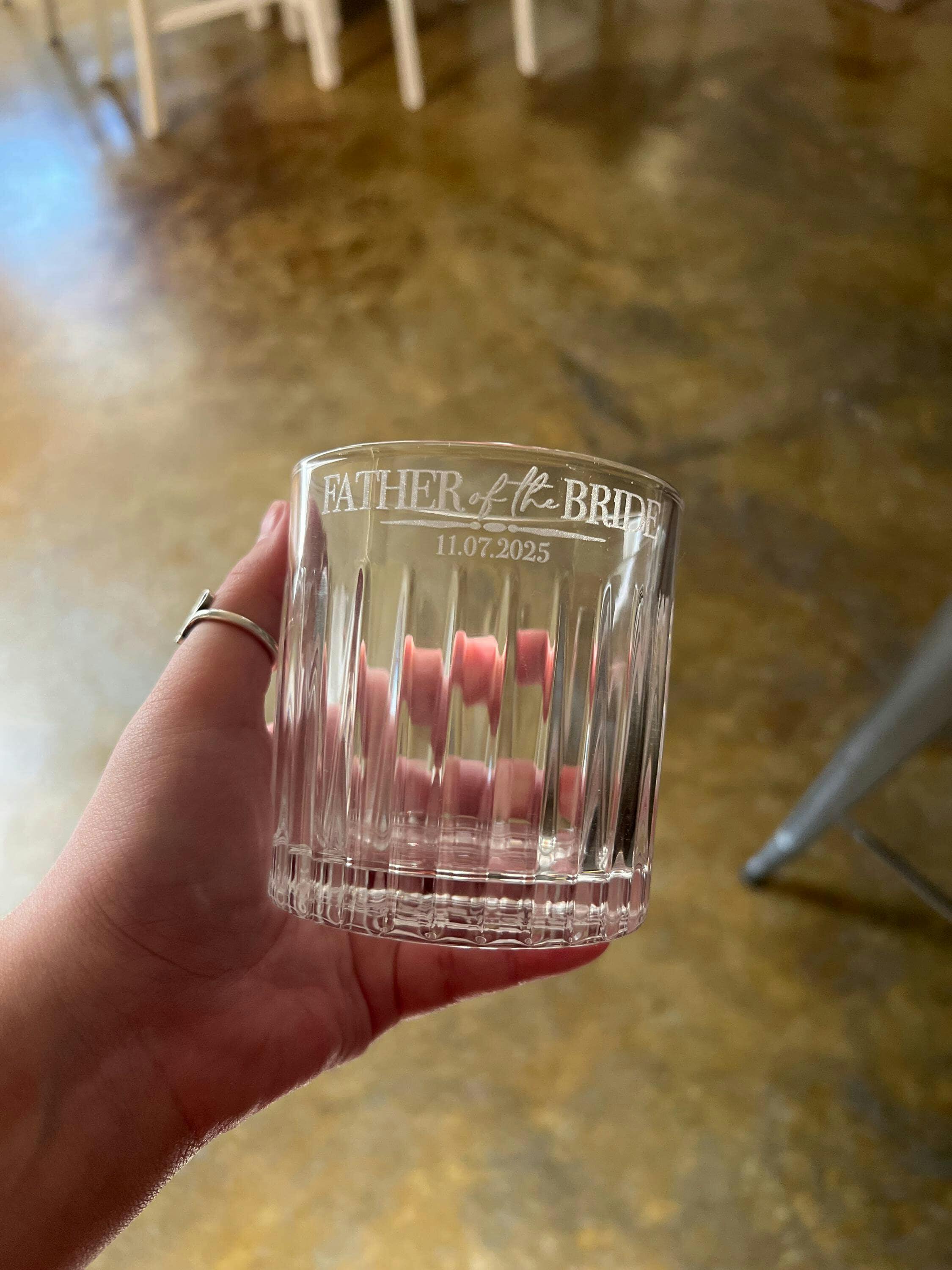 This custom whiskey glass is designed for both functionality and beauty. Whether your father enjoys whiskey, bourbon, or scotch, this glass will enhance the tasting experience, making toasts at weddings more memorable. It arrives beautifully packaged in a chic gift box, ready for presentation. Pair it with your favorite whiskey or a heartfelt note for an extra special touch. This unique and thoughtful gift will be sure to warm his heart and remind him of the special bond you share.